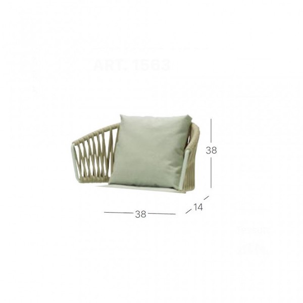 Imbottito e riverito in tessuto acrilico Agorà oppure brevettato Sunbrella, in coordinato con il sedile incorporato nella seduta della poltrona.