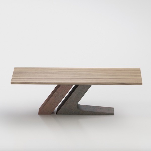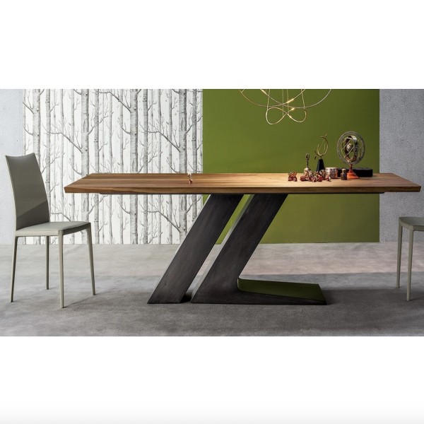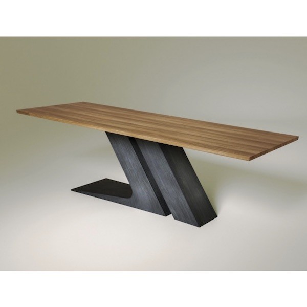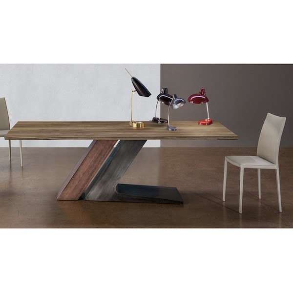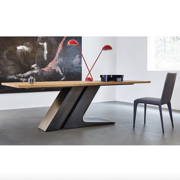 Gli elementi che compongono la base inclinata del tavolo sono realizzati entrambi in metallo verniciato. La versione più piccola da 200 cm, invece, è dotata di un solo elemento centrale a forma di L che regge il piano. La struttura è disponibile nelle seguenti finiture: Bianco, Nero, Grigio Antracite, Tortora oppure in alternativa in Rame, Ottone o Decapato.