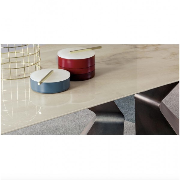 La struttura è realizzata in acciaio verniciato sia per garantire al tavolo una certa stabilità e sia comunque per fornirgli un tocco industrial. E' possibile, inoltre, scegliere per la configurazione di quest'ultima tra sei colorazioni: Verniciato Bianco Lucido, Verniciato Bianco Opaco oppure Verniciato Grigio Antracite Opaco.