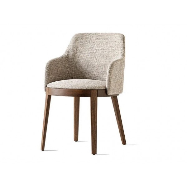 L'intero telaio della poltrona è in legno massello di frassino mentre tutti gli imbottiti come braccioli, schiena e sedute sono imbottiti e rivestiti in tessuto Kalix.