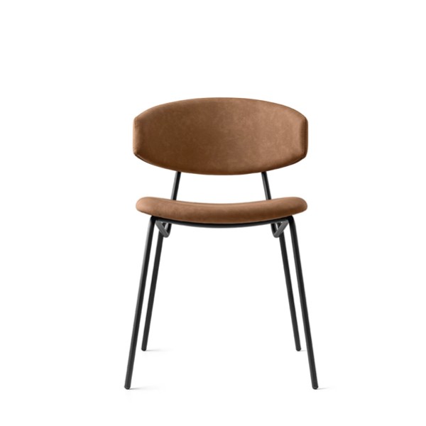 L'intero fusto è in tubolare d'acciaio verniciato. Seduta e schienale sono in multistrato imbottiti e rivestito in morbida similpelle Skuba oppure in soffice tessuto Bergen.