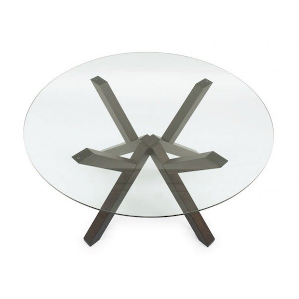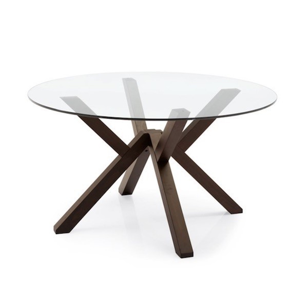 In collezione outlet Mikado è disponibile nell'unica combinazione di colori con gambe in legno finitura Wengè e piano in vetro Trasparente.