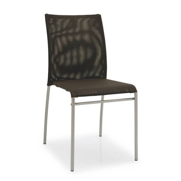 Al colore acciaio satinato del fusto di Jenny è possibile combinare una seduta e schienale nei colori: Nero e Caffè