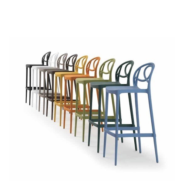 Queste caratteristiche lo rendono ideale per completare l'arredo sia di penisole o snack di casa, e sia di banconi o tavoli alti di bar, ristoranti, pizzerie, fast food e qualsiasi altra tipologia di attività commerciali. Etoile Bar, come il resto della collezione, è consigliato anche per spazi all'aperto.