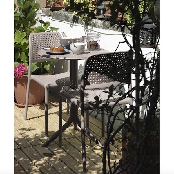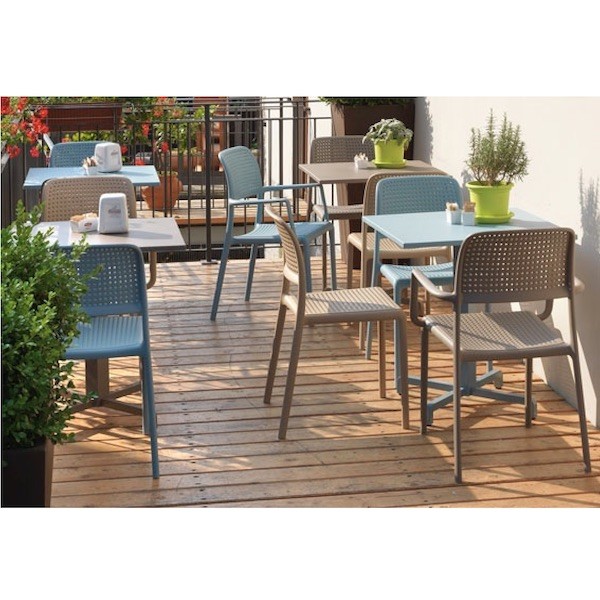 Bora Bistrot è la sedia monoblocco della collezione Nardi dal design moderno e morbido, é prodotta con materiale di ultima generazione riciclabile al 100%.