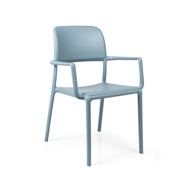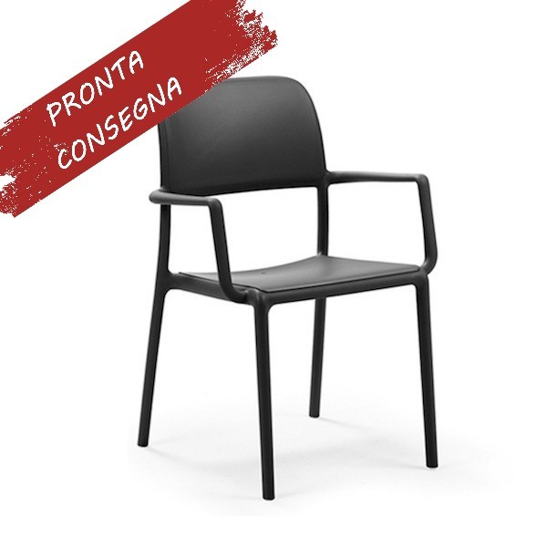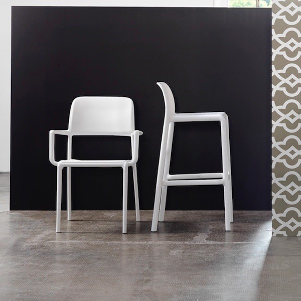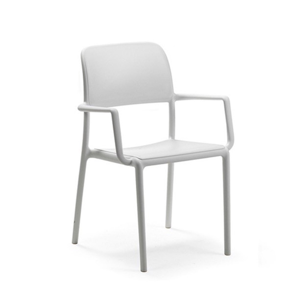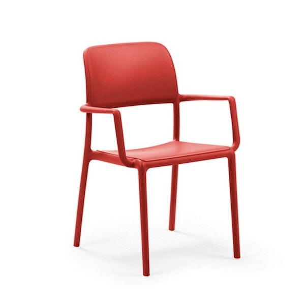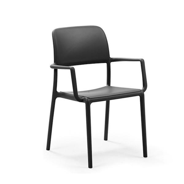 Riva con braccioli è la poltroncina della collezione Nardi dal design contemporaneo ed essenziale, é prodotta con polimero termoplastico di ultima generazione riciclabile al 100%.