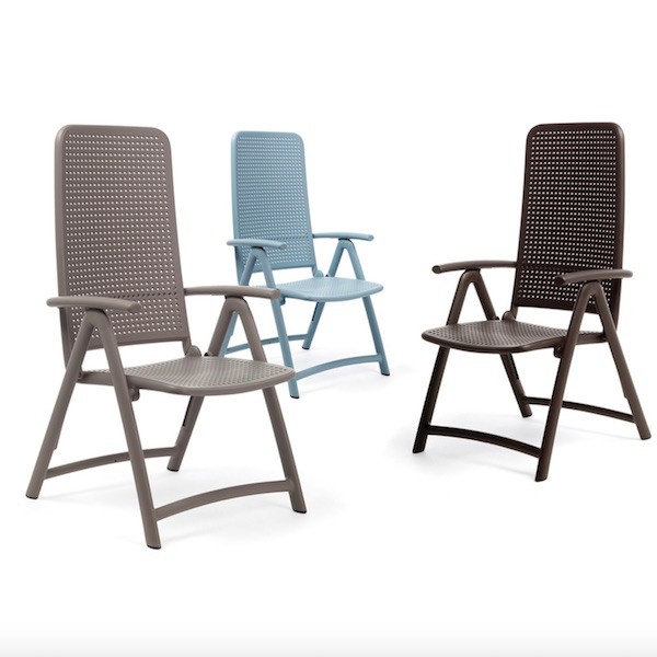 La Poltrona pieghevole Darsena della collezione Nardi, ha un design dalle linee morbidi e confortevoli, é prodotta con polimero termoplastico di ultima generazione riciclabile al 100%; il sedile e schienale sono traforati per una maggiore traspirazione.