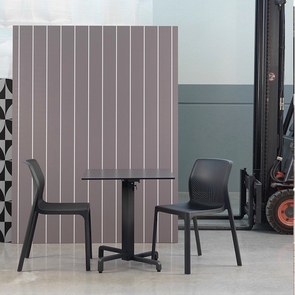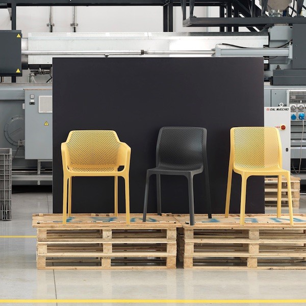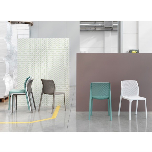 Bit è la sedia della collezione Nardi dal design moderno e morbido, é prodotta con materiale di ultima generazione riciclabile al 100%.