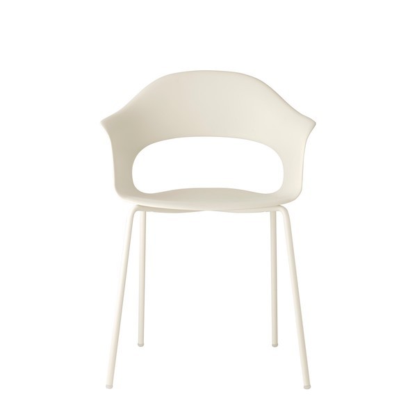 Il telaio della sedia è realizzato in tubolare d'acciaio verniciato dal diametro pari a 16 millimetri. La seduta invece, dotatati di braccioli, è stampata in polipropilene in un unico blocco a co-iniezione. I materiali di concezione moderna utilizzati per la produzione, garantiscono stabilità e resistenza all'intero prodotto.
