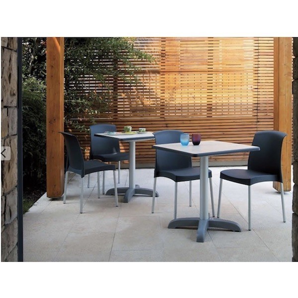 Jenny è una sedia leggera, pratica, robusta e resistente sia all'usura che agli agenti atmosferici.