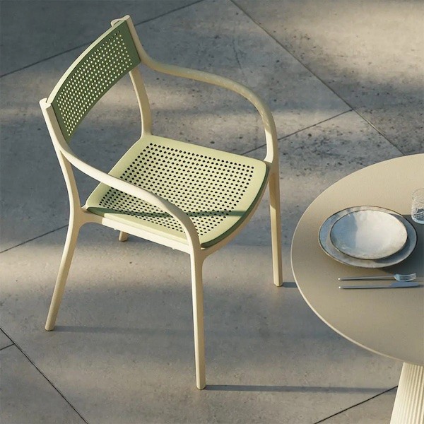 Perfetta come sedia outdoor di design, si adatta con naturalezza anche a sale da pranzo moderne, terrazze, giardini, lounge bar, hotel e ristoranti. I braccioli integrati assicurano maggiore comfort e sostegno, rendendo la seduta comoda anche per utilizzi prolungati. La struttura monoblocco garantisce stabilità e durata nel tempo. Inn gusta versione si contraddistingue per la presenze dei molteplici fori preseti su seduta e schienale dettaglio che, seppur materialisticamente idoneaa qualsiasi ambiente , consente di preferire prettamente spazi esterni