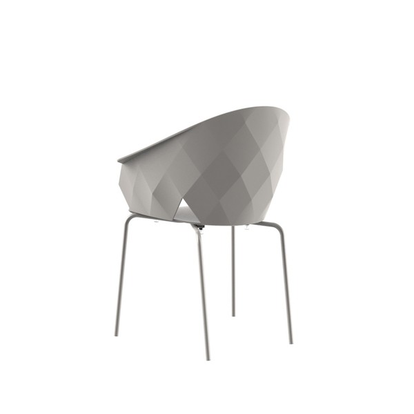 Le quattro gambe a sezione tonda sono realizzate in acciaio inossidabile, mentre la seduta monoscocca è in polipropilene rinforzato in fibra di vetro. Insieme rendo il prodotto ideale per essere esposto ad ogni intemperie.